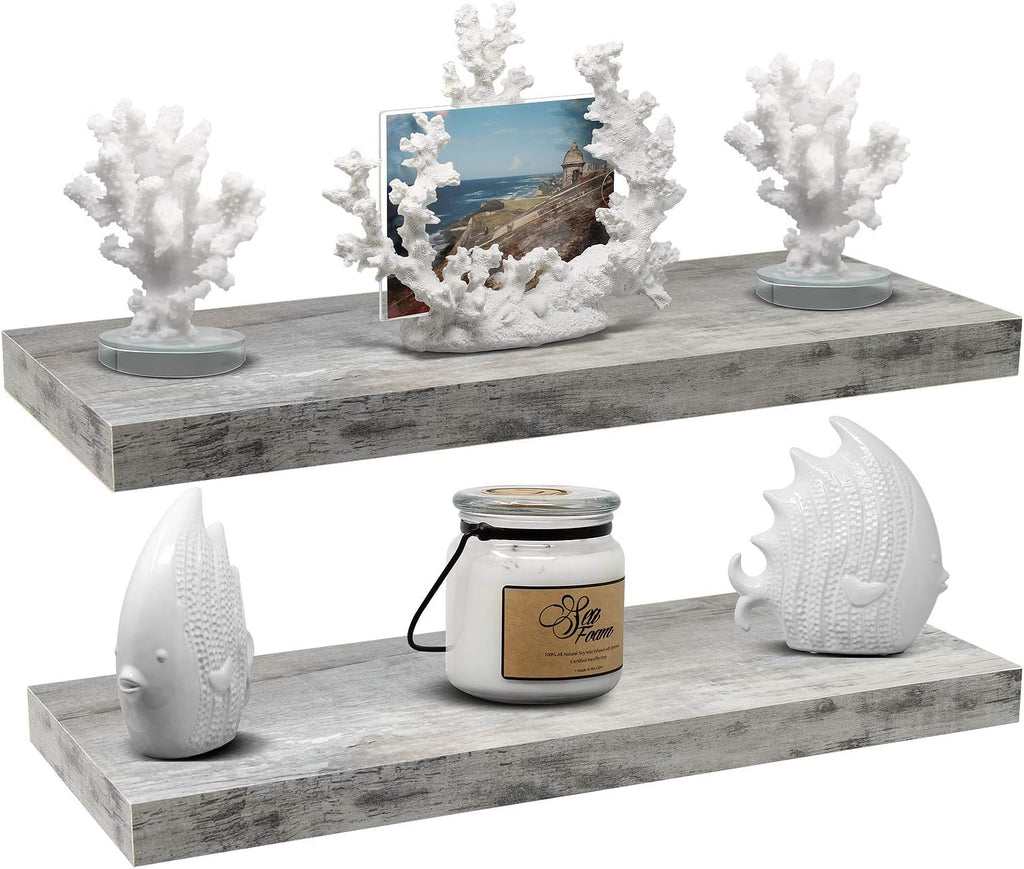 Floating Wall Shelves – 23.75" Rustic Beach-Inspired Storage and Display Shelf for Bathroom, Living Room, or Bedroom (Set of 2)