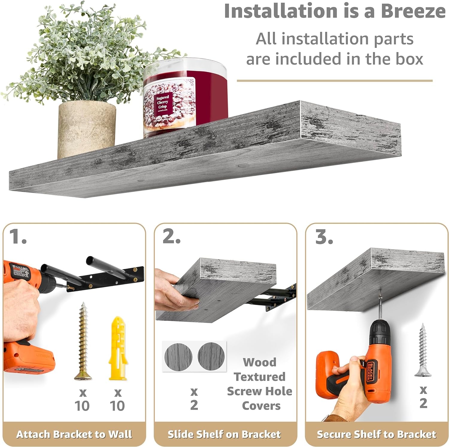📏 Generous Surface Area – Each shelf measures 23.75" L x 9.25" W x 1.5" H, offering ample space for books, toiletries, decor, and more.