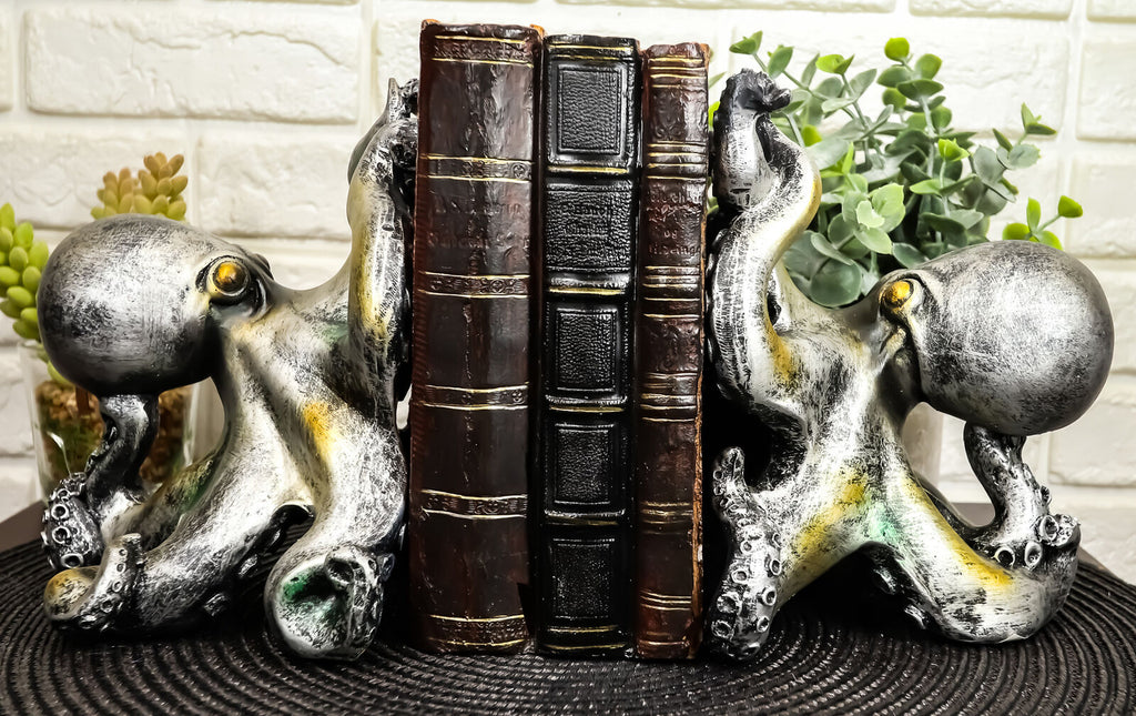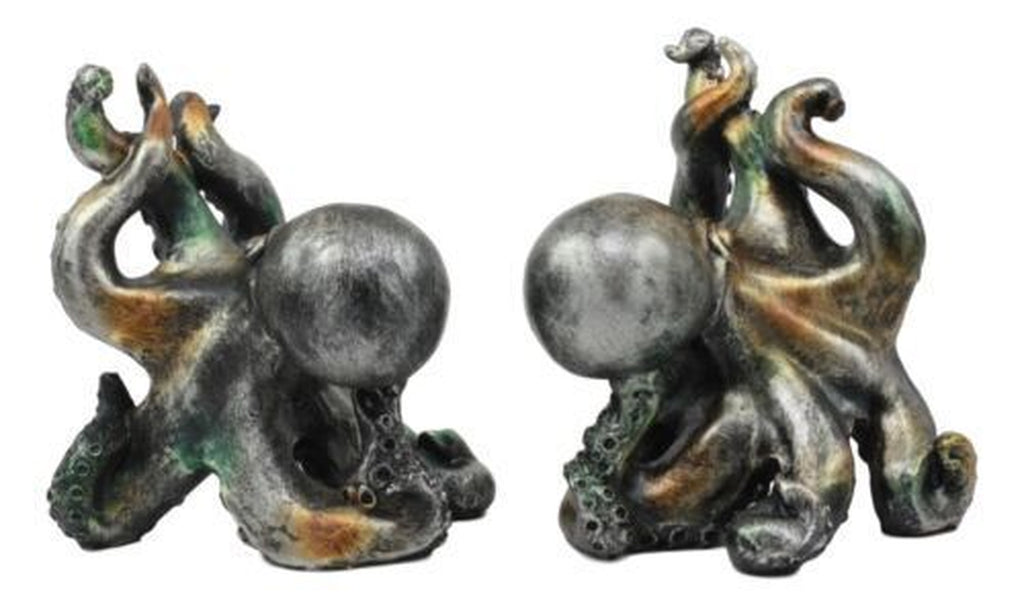 Nautical Octopus Bookends Set – 6.25" Tall Hand-Painted Sea Monster Statues with Antique Bronze Finish – Coastal Desk or Shelf Decor