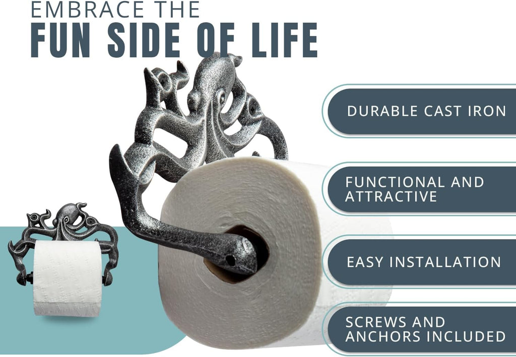 Give your bathroom a whimsical upgrade with the Octopus Toilet Paper Holder—a unique blend of durability, function, and ocean-inspired charm. Made of heavy-duty cast iron and featuring a rustic finish, this artistic piece is the perfect accent for nautical, coastal, or vintage-themed bathrooms.