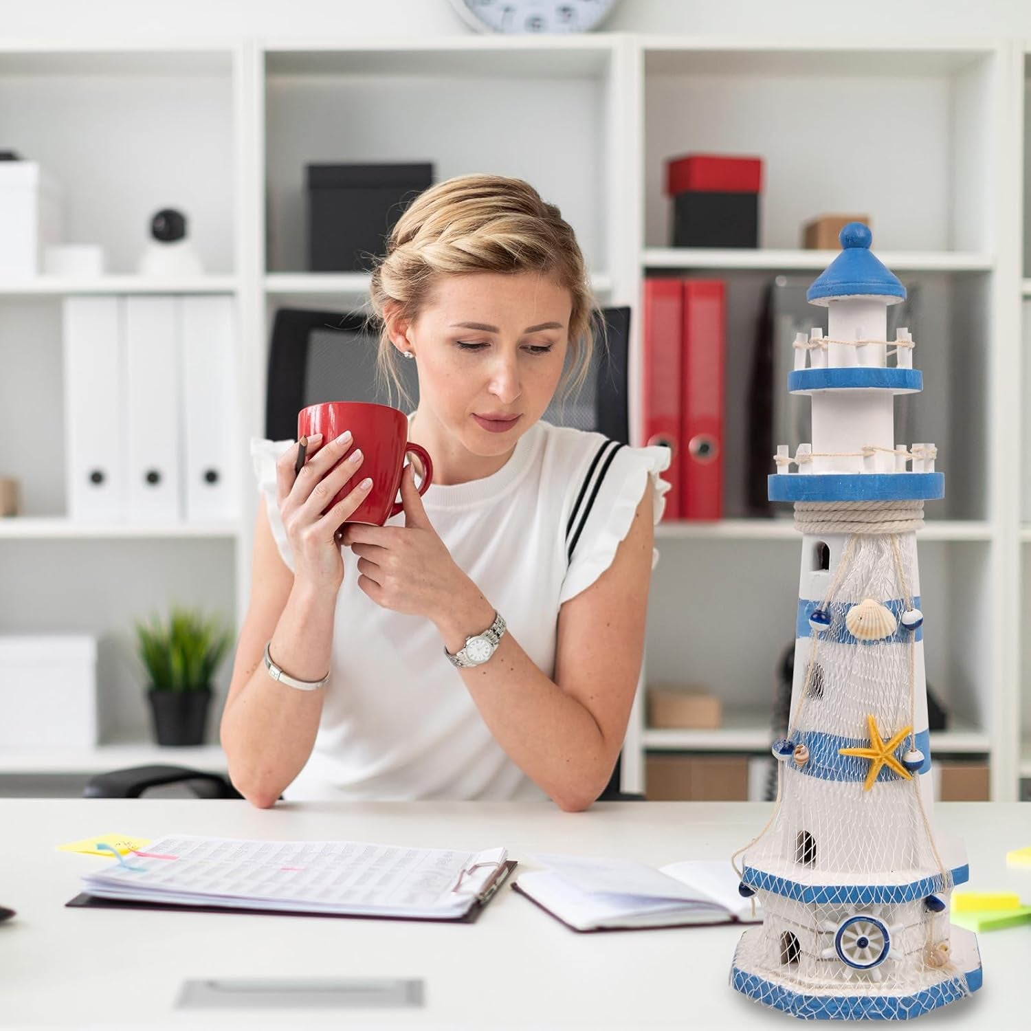 Perfect Size & Style – Measuring 15” tall and 4.9” in diameter, this lighthouse fits beautifully on shelves, tables, or as a centerpiece in lake houses, beach homes, or nautical-themed rooms.